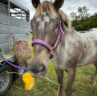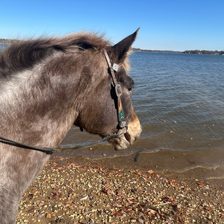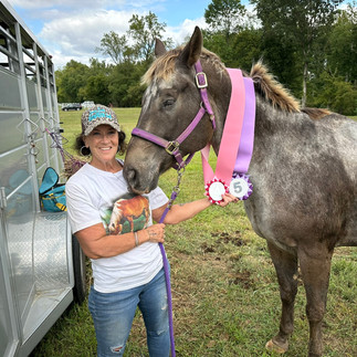 Through the days, weeks, and months, Apollo and Heidi developed a strong bond. With the help of other experts, Heidi was able to gain Apollo's trust, his love, and he gained his confidence back. Apollo now does obstacle courses, loves to trail ride, loads and unloads on the trailer with no issues, love cookies and mints, and enjoys being loved. He is the first to greet Heidi at the barn every morning and evening. Apollo discovered the fig tree just outside the fence and when Heidi is gardening, he stands there waiting for figs.